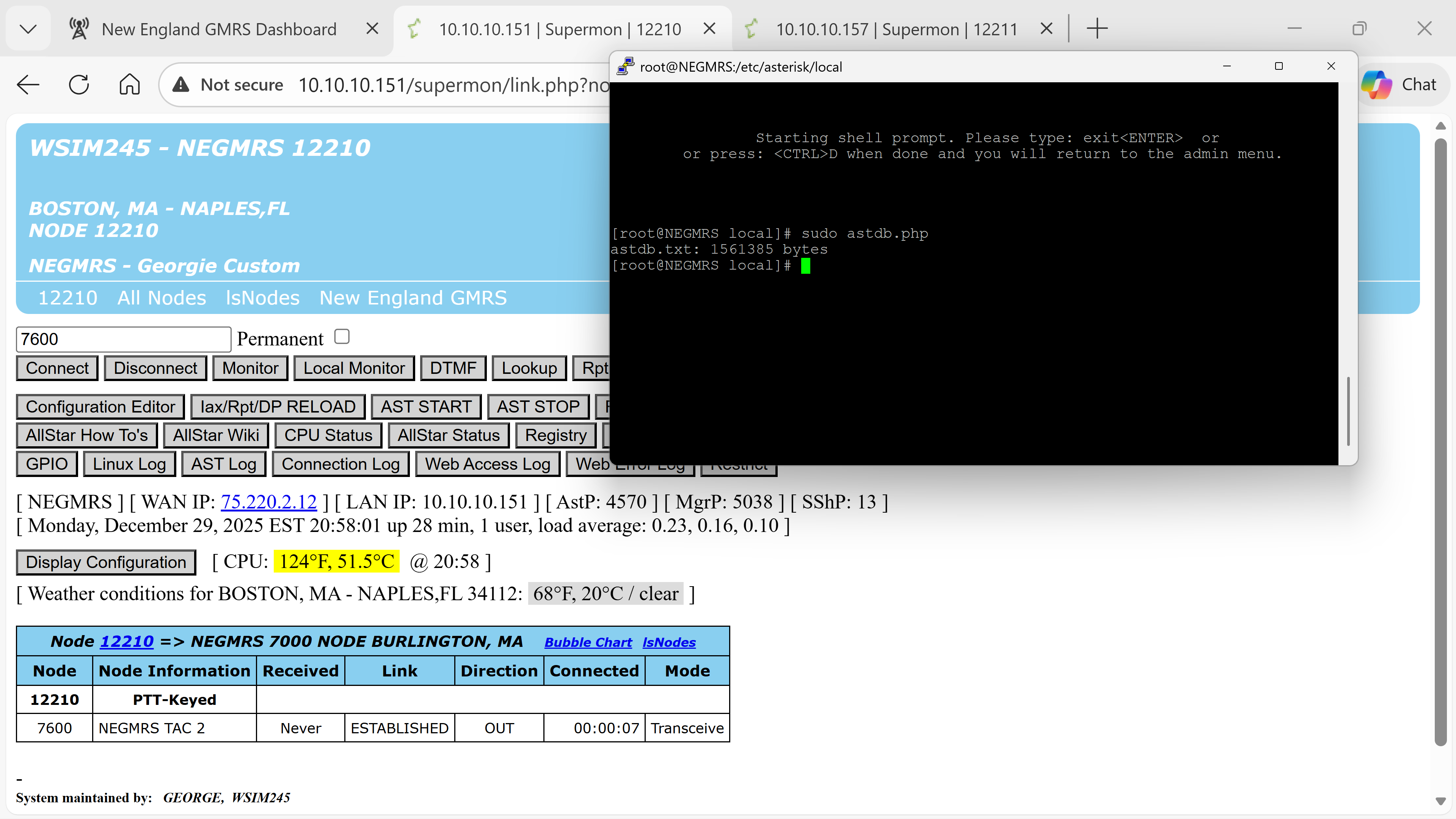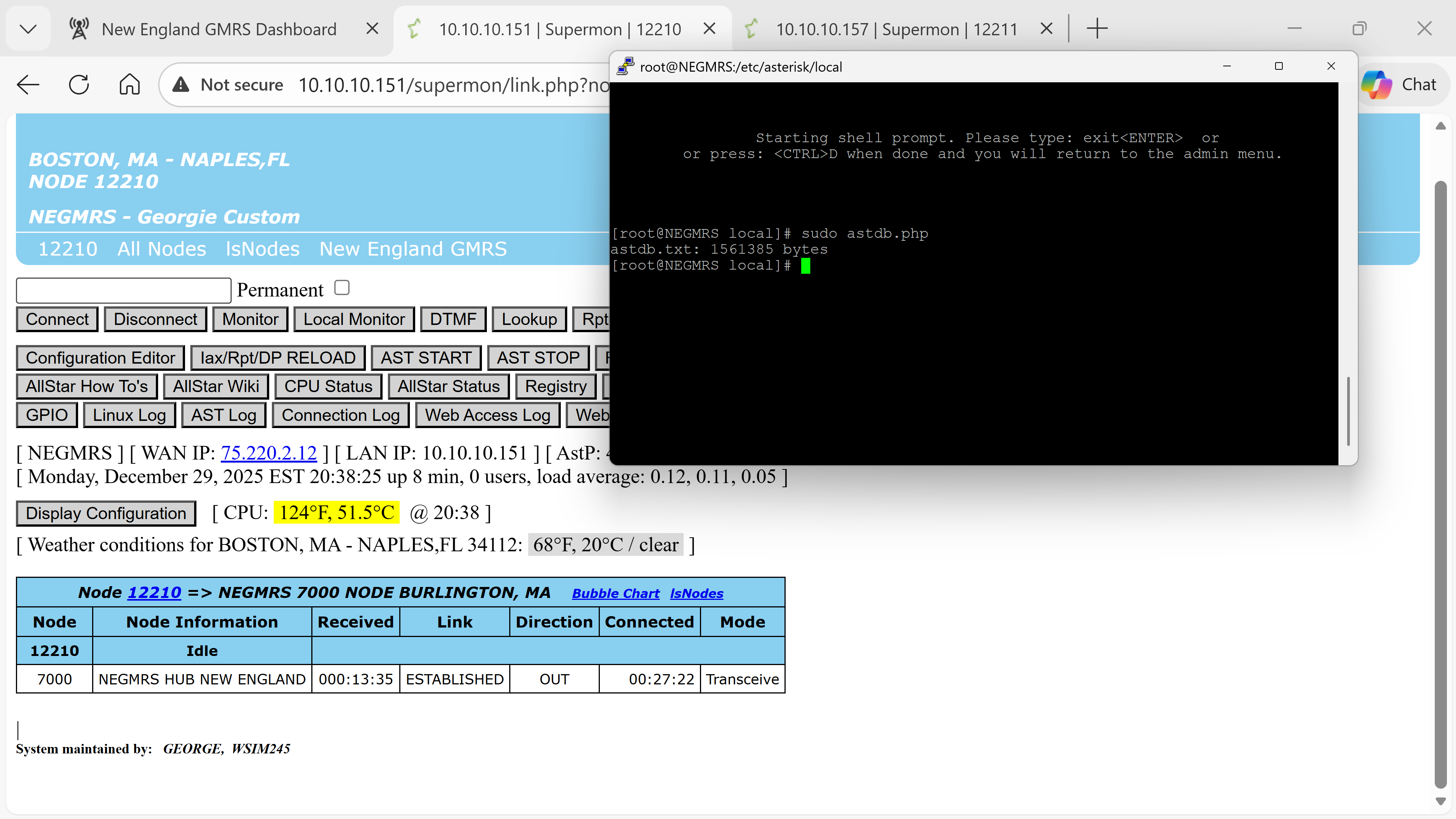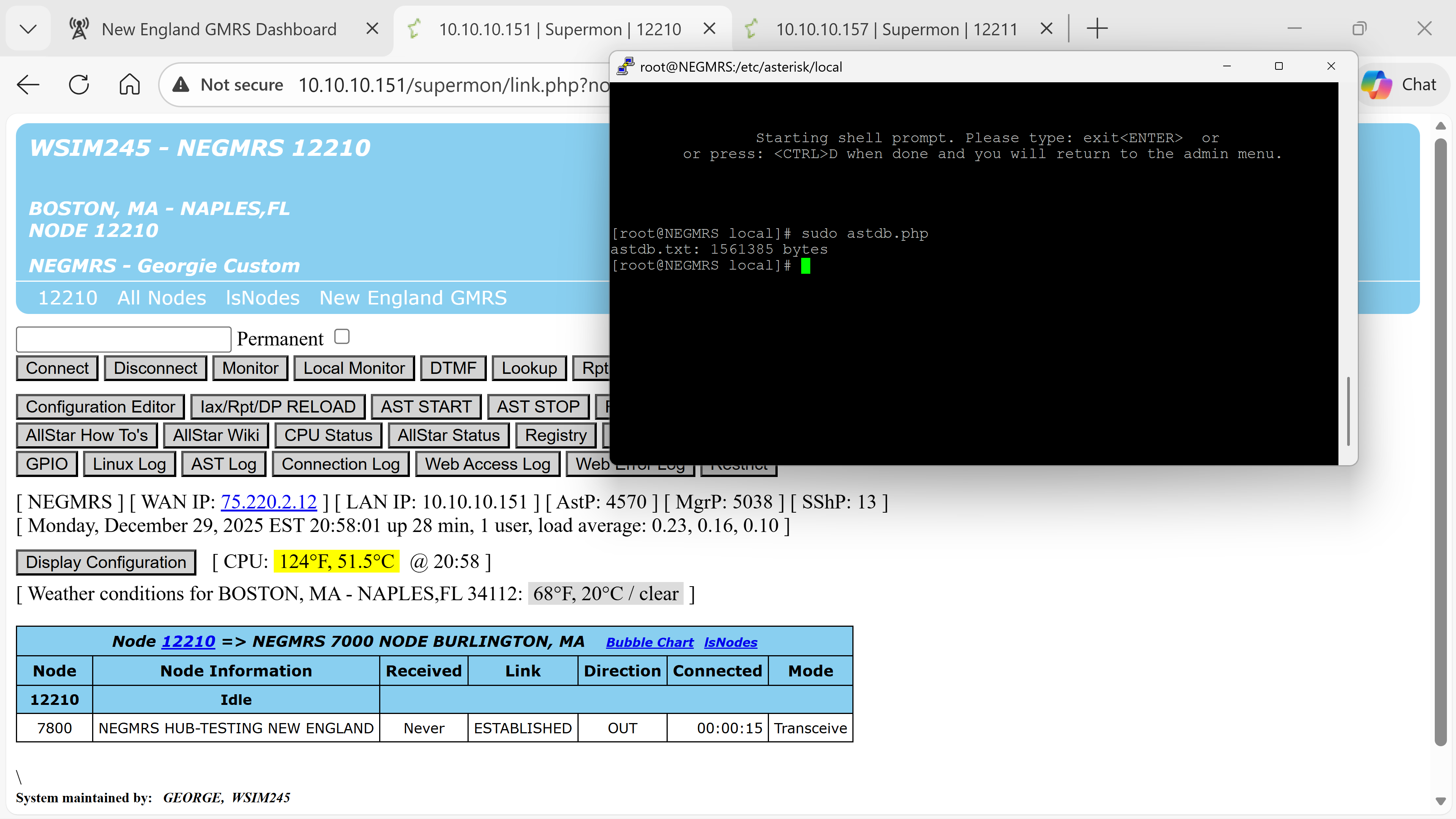 /Update Node list fixed. Rather, updated to the new system, with new kernel. Basically, new everything. I chose to change the stock image which is perfection btw. *I do no recommend doing so. https://register.newenglandgmrs.com/nodelist/nodes.txt is in wrong format for my custom jobbie. Of course this is my fault,